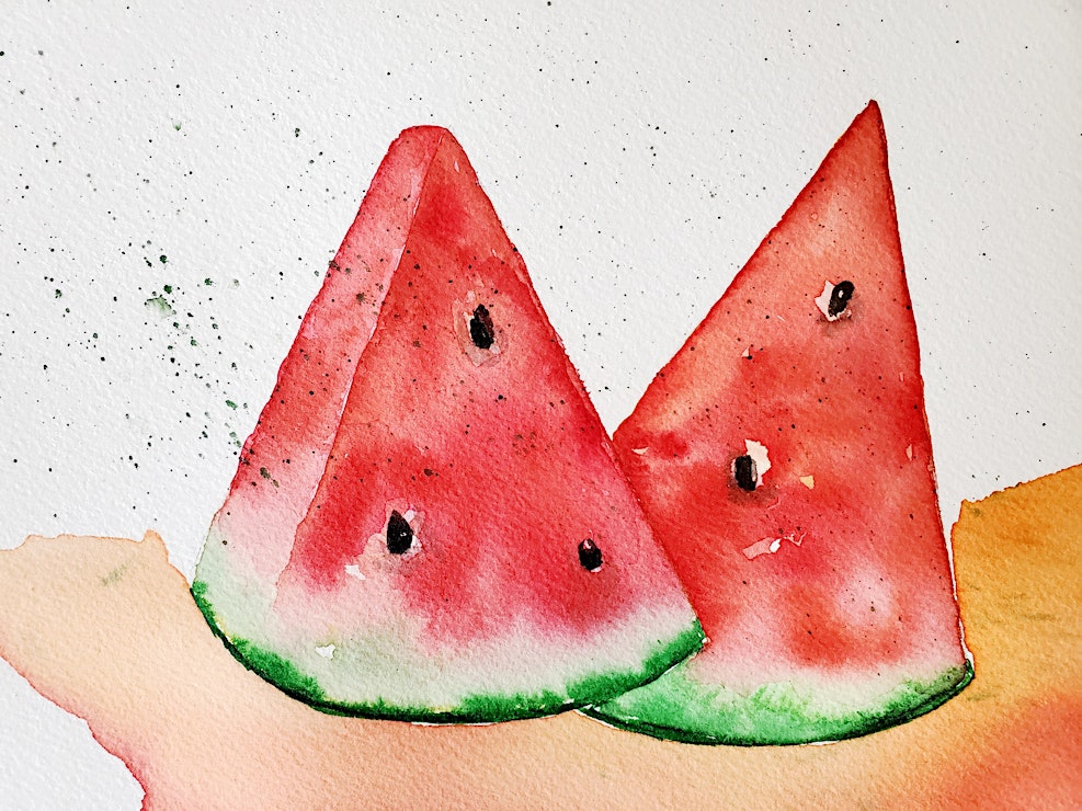 Summer is here! Learn to paint a refreshing slice of watermelon while learning the basic watercolor techniques.