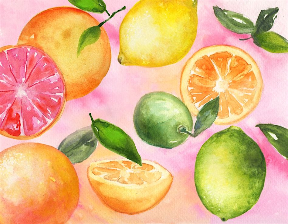Watercolor - Fresh and vibrant Florida citrus fruit